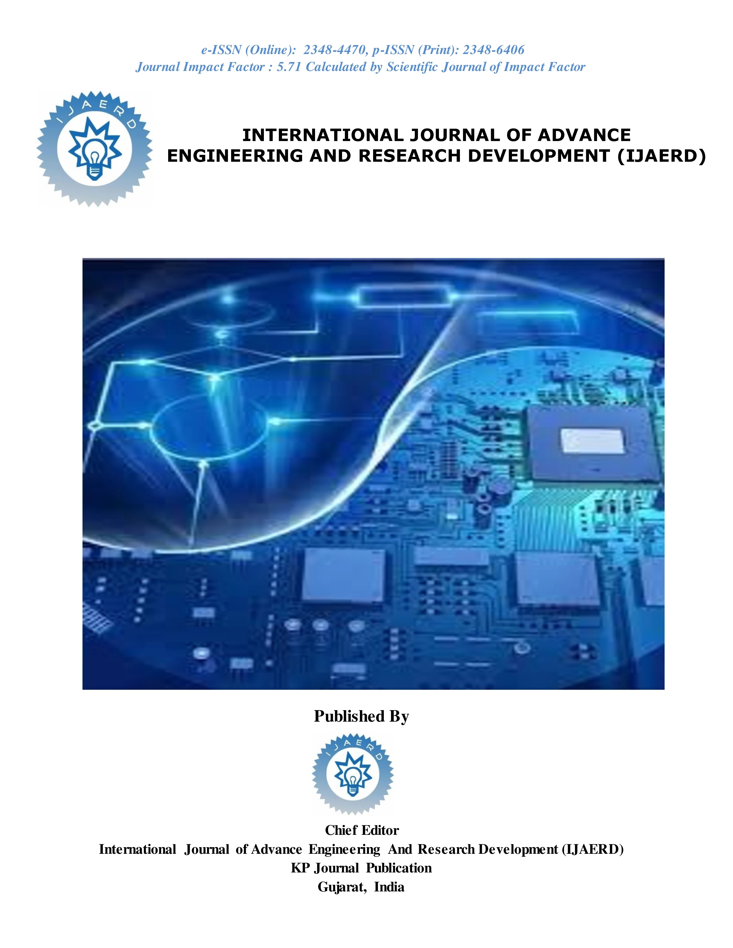 International Journal of Advance Engineering and Research Development (IJAERD) is a peer-reviewed, registered with NSDL(e-ISSN: 2348-4470, p-ISSN:2348-6406) online International Journal published monthly. IJAERD is Highly Impact journal from India, With Reference SJIF 2015 We have Secured 62 Rank among 18000 Journal Registered in SJIF, Its a leading e-journal, under which we are encouraging and exploring newer ideas of current trends in Engineering by publishing papers containing pure knowledge.The Journal is started with noble effort to help the researchers in their work and also to share knowledge and research ideas. Subject Area(Focused but not limited to): Aeronautical Engineering, Agricultural Engineering, Audio Engineering, Chemical Engineering, Civil Engineering, Computer Science & Engineering, Electronics & Communications Engineering, Electrical Engineering, Engineering Chemistry, Engineering Management, Engineering Maths, Engineering Physics, Engineering Sciences, Industrial Engineering, Instrumentation Engineering, Mechanical Engineering, Nano Engineering, Natural Sciences, Humanities, Network Engineering, Nuclear Engineering, Rubber Technology, Software Engineering, Structural Engineering, Systems Engineering, Telecommunication Engineering, Textile Engineering.
