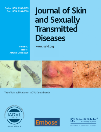 Journal of Skin and Sexually Transmitted Diseases (IADVL, Kerala) is a biannual peer-reviewed open access journal that publishes articles in the field of dermatology, sexually transmitted diseases, leprosy, and dermatosurgery. It is the official publication of the Indian Association of Dermatologists, Venereologists, and Leprologists (Kerala), but accepts articles from around the world. The journal is published in print as well as an electronic version. Readership: Audience includes but not limited to the Dermatologists, Venereologists, Leprologists, and Dermatosurgeons all over the world.