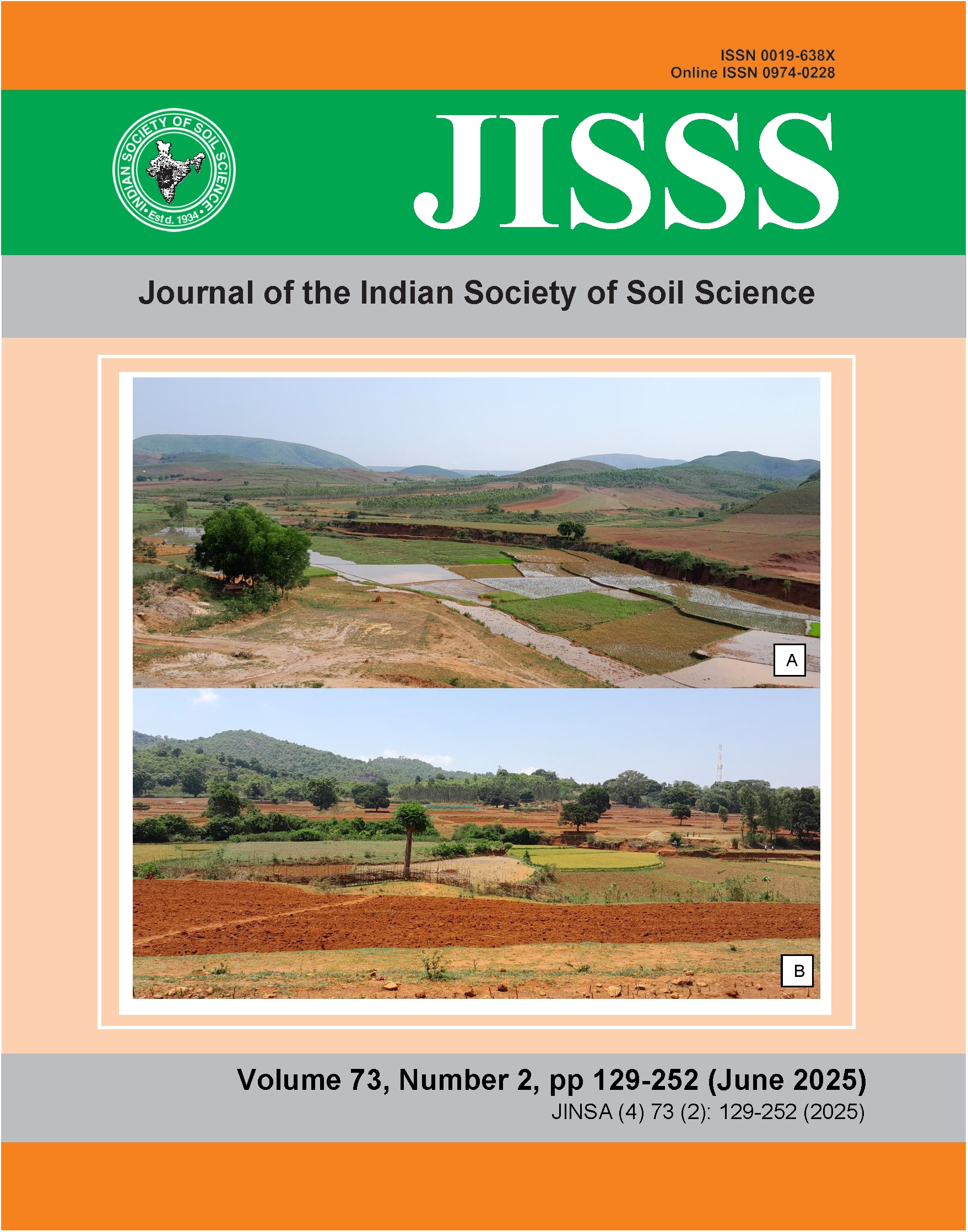 Journal of the Indian Society of Soil Science is the periodical brought out quarterly since 1953 (March, June, September and December) and it covers all aspects of soil study. The Society organizes seminars, symposia, conferences, meeting etc. enables members of ISSS and others to interact and disseminate knowledge on soil and land. Annual Convention of the Society is held regularly. This Society has celebrated its Golden Jubilee in 1984, Diamond Jubilee in 1994 and Platinum Jubilee in 2009. The Journal of the Indian Society of Soil Science publishes papers concerned with the advancement of agriculture throughout the world. It publishes original scientific work related to strategic and applied studies in all aspects of agricultural science and exploited species, as well as reviews of scientific topics of current agricultural relevance. Specific topics of interest include (but are not confined to): soil genesis and classification; soil properties and processes in relation to soil physics, soil chemistry, soil biology, soil mineralogy; soil evaluation and land use planning, soil fertility and plant nutrition, crop production; soil engineering and technology, soil degradation, control, remediation and reclamation; soil and environment, environmental impacts of agriculture and forestry, impacts of climate change. The journal also publishes book reviews.