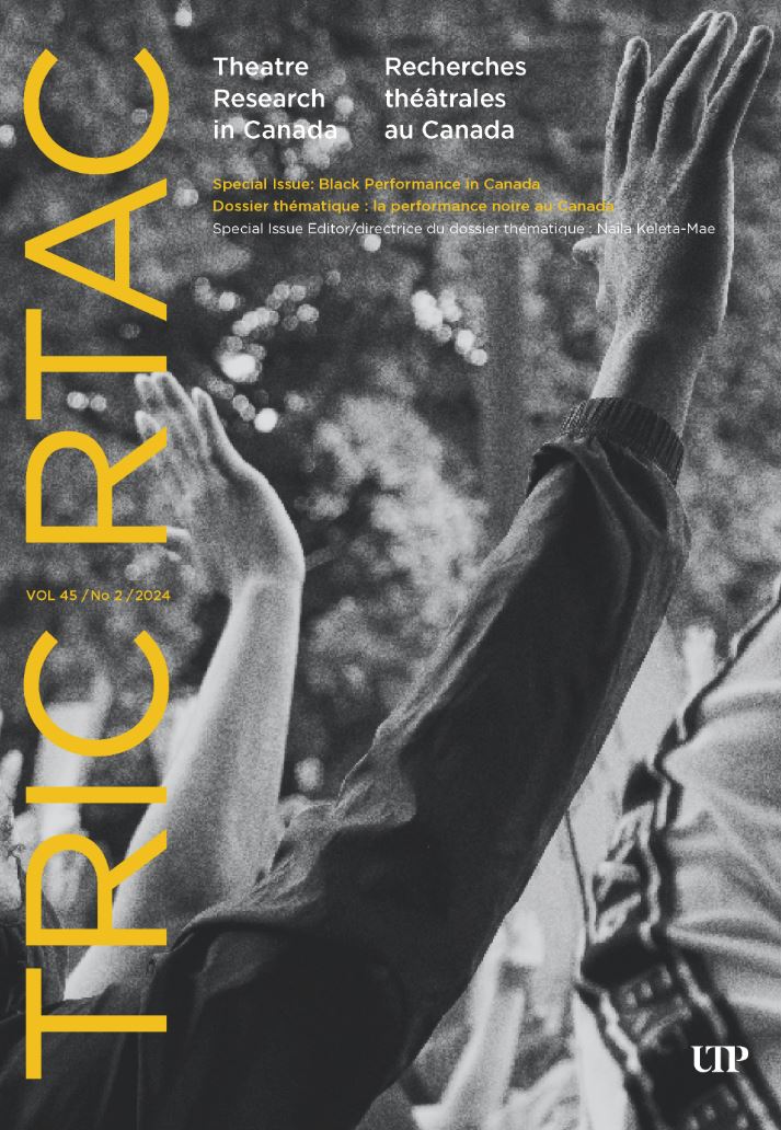 Theatre Research in Canada/Recherches théâtrales au Canada (TRIC/RTAC) is Canada’s only peer-reviewed journal with an explicit focus on Canadian and québécois theatre in both official languages. As such, it provides a necessary forum for the dissemination of scholarly research that uses the full range of critical approaches applied to the study of theatre as a multidisciplinary art, in the context of the cultures of Canada and Quebec. TRIC/RTAC remains committed to its long history of publishing original studies of actors, playwrights, directors, designers, theatre companies and buildings, theatrical genres, festivals, and other large-scale performances, as well as theoretically grounded studies of individual dramatic works and performance texts. It likewise continues to play an active role in broadening the parameters of theatre scholarship in Canada, through engagement with multi- and interdisciplinary research; studies of specific cultural groups and intercultural exchange; investigations of new and emergent technologies in Canadian design and performance; and explorations of theatricality and performativity beyond the traditional contexts of theatre and drama. Drawing inspiration from the recent emergence of performance studies as an important cognate discipline, the journal encourages submissions that address such topics as the performance of everyday life; the performativity of race, gender, class, and other identity categories; and the performance of nation or community through public acts or spectacles (to name but a few). TRIC/RTAC remains dedicated to supporting research that explores Indigenous theatre and performance culture, with the understanding that necessary systemic reparations and redress are both distinct and interrelated to the experiences of other historically disadvantaged social groups.