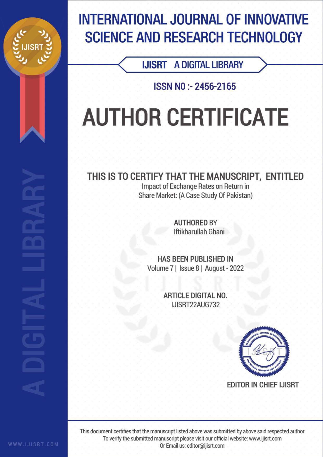 The study is focused at appraising the influence of Exchange rates on Returns in Share Market: A Case study of Pakistan. Time- series data of 36 years was used, from year 1980 to 2016. For ...