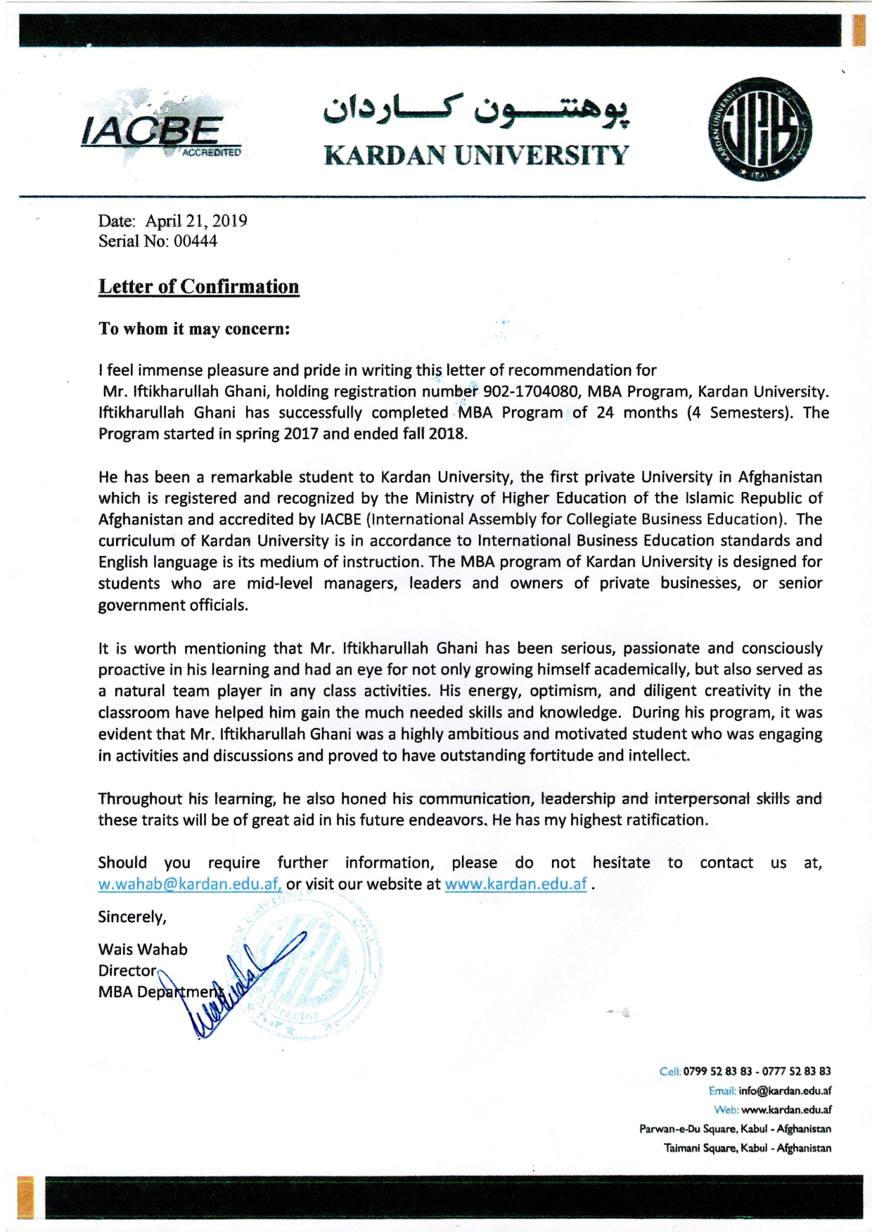 Mr. Iftikharullah Ghani is a highly accomplished Business Development Specialist with over eight years of extensive experience in driving organizational growth through strategic planning, business development, and international project management. He has a proven track record of working with renowned international organizations such as USAID and currently holds a leadership role as Project Manager at the Organization for Afghanistan Development Corps (OADC). His career is characterized by consistent achievements in strengthening business operations, optimizing processes, and securing funding for impactful development initiatives. Mr. Ghani holds a double Master’s degree—MS in Project Management (MSPM) and MBA in Accounting and Finance—along with CPD-certified professional certifications in specialized fields, further reinforcing his academic and practical qualifications. These academic credentials have enabled him to bridge the gap between strategic vision and operational execution across different industries and sectors. Throughout his career, Mr. Ghani has demonstrated exceptional capabilities in analyzing business environments, assessing organizational needs, and developing comprehensive marketing and sales strategies to enhance competitiveness and revenue. He has worked on multi-sector development projects, particularly those related to NGOs and international aid, and is known for his ability to align project goals with donor expectations and organizational objectives. His role in proposal writing and fundraising has been critical, especially in drafting persuasive proposals that attract financial support for various developmental programs. These efforts have contributed significantly to the sustainability and impact of the organizations he has served. His exposure to multi-donor environments has provided him with an in-depth understanding of the grant lifecycle, from identification and application to reporting and compliance. In addition to his strategic competencies, Mr. Ghani has shown a strong commitment to team development and stakeholder engagement. He has designed and implemented training programs aimed at improving workforce efficiency and has played a vital role in building partnerships that enhance collaborative impact. His communication and coordination skills have consistently contributed to the smooth execution of projects and the achievement of key performance indicators. Furthermore, Mr. Ghani’s leadership style reflects professionalism, cultural sensitivity, and a results-driven mindset. His ability to manage time and resources efficiently has made him a reliable leader in fast-paced and complex work environments. He is also known for adapting quickly to changing priorities and delivering under pressure without compromising quality. His current work with OADC and previous roles with USAID-affiliated projects have allowed him to directly influence policy, program design, and long-term development outcomes at both grassroots and national levels. Whether leading a team, writing a high-stakes proposal, or negotiating with stakeholders, Mr. Ghani brings focus, dedication, and strategic thinking to every initiative he undertakes. In summary, Mr. Iftikharullah Ghani stands out as a seasoned professional whose skills and expertise are essential for any organization seeking sustainable growth, impactful project execution, and effective stakeholder engagement in both the public and private sectors.