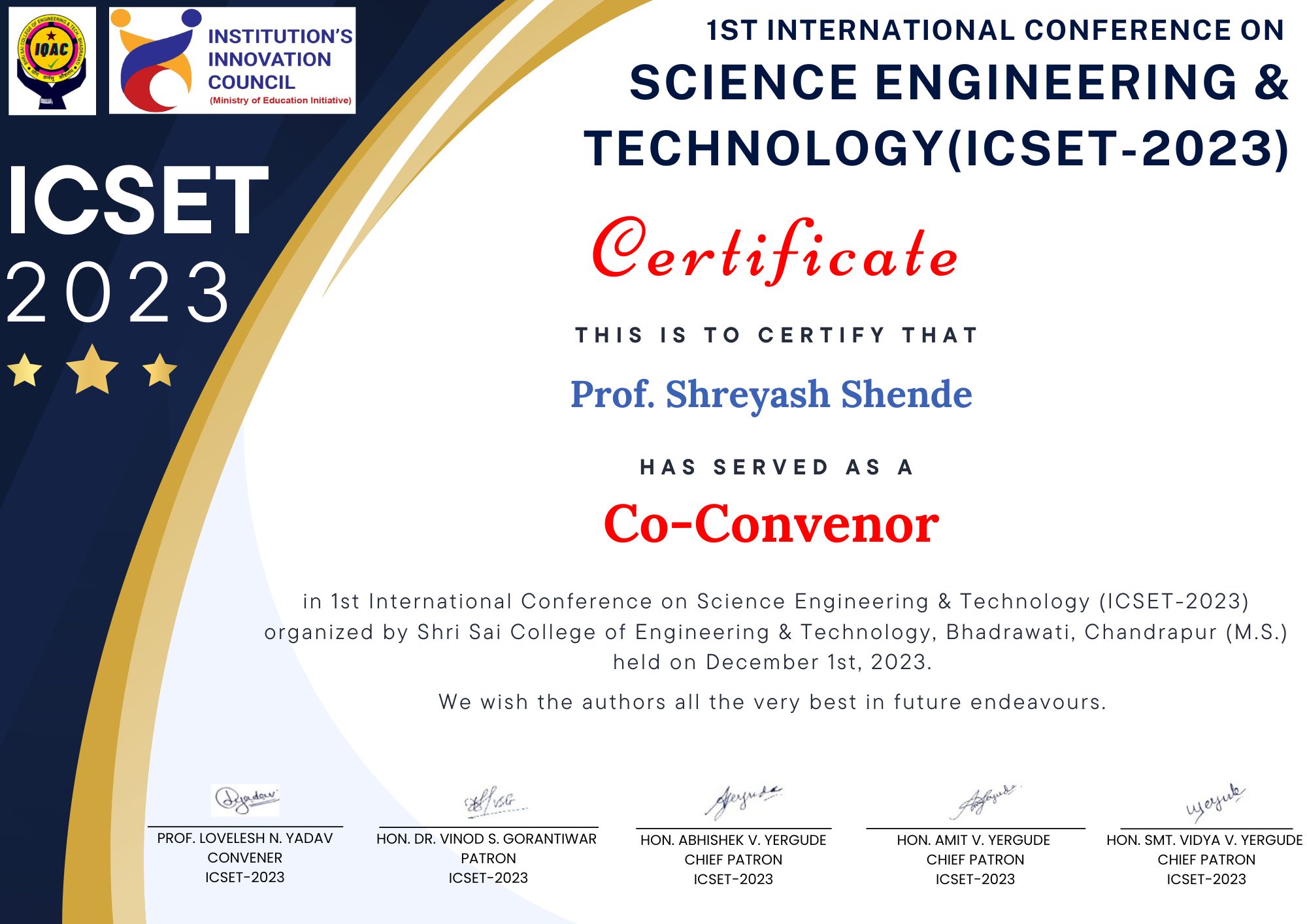 Certificate of Co-Convenor