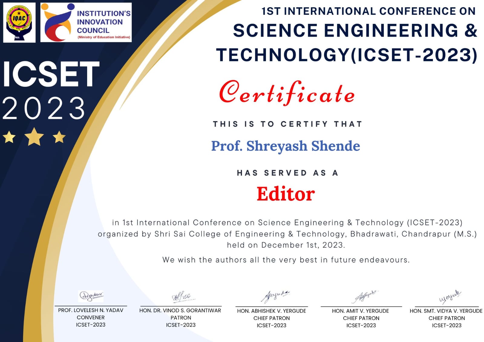 Certificate of Editor